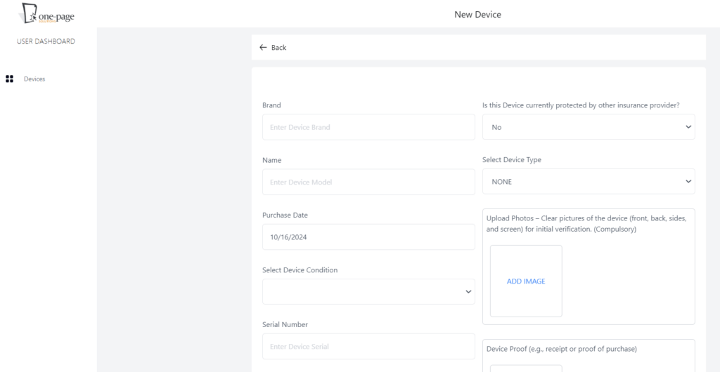 1. Navigate to the “Add Device” section on your dashboard.